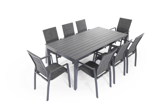 סט ANITA שולחן אלומיניום נפתח לגינה, בנוי משילדת אלומיניום חזקה וקלת משקל, וכולל 8 כיסאות אלומיניום. המרופדים בבד איכותי כפול מסוג סלינג / טקסטלין.